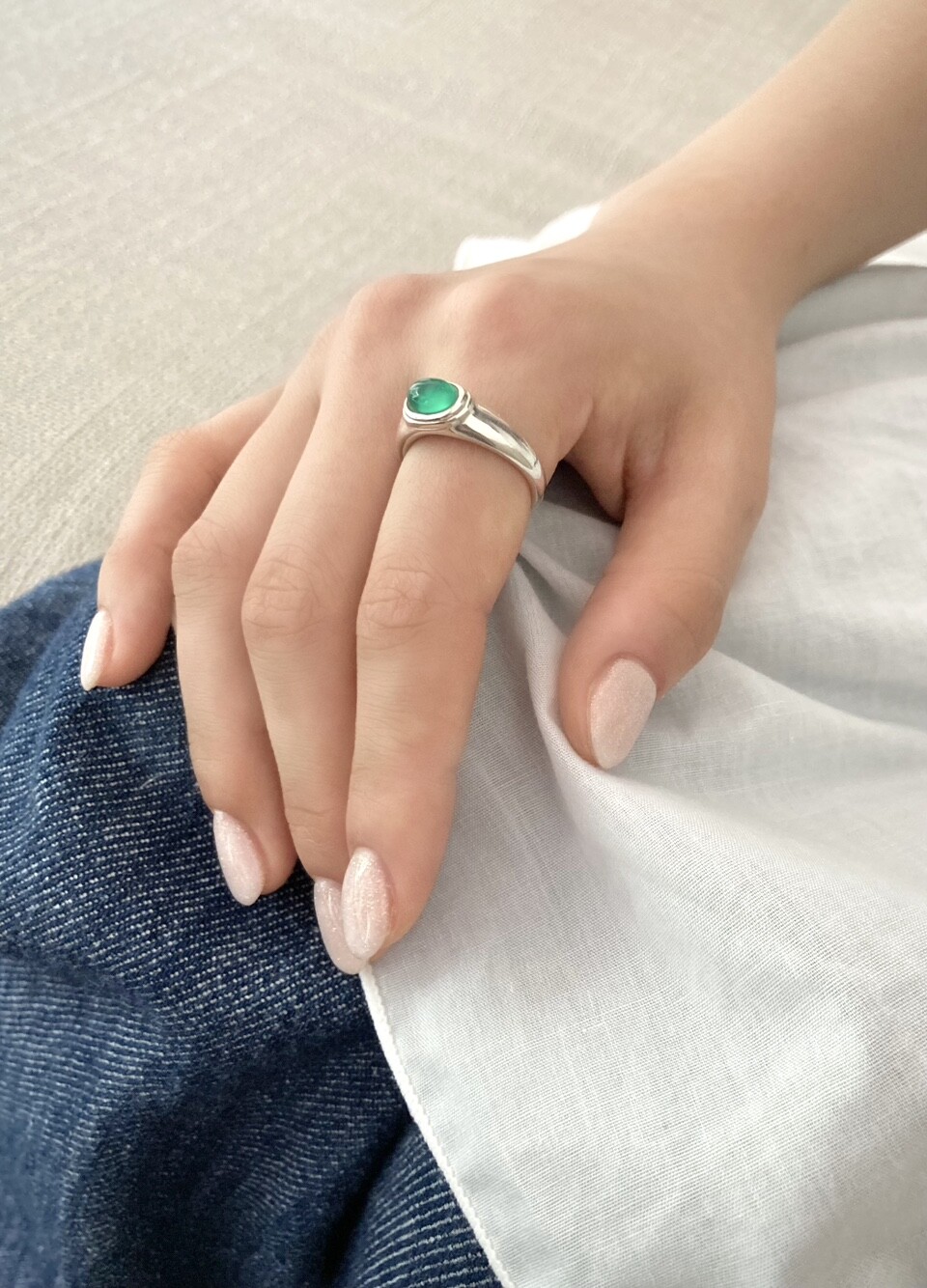 fables silver ring_ green onyx