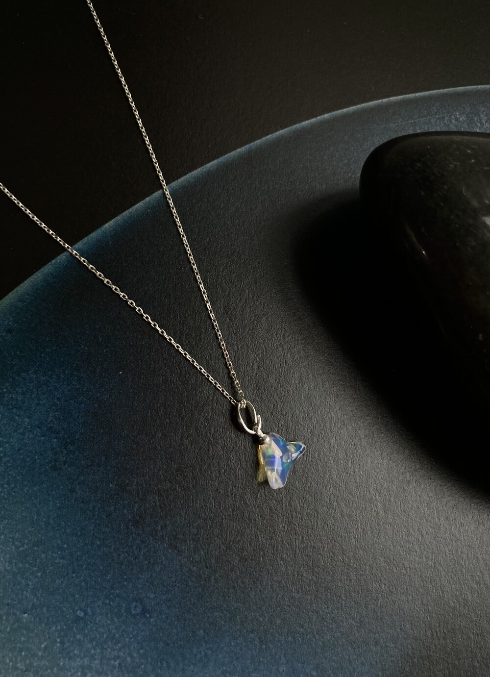 organic silver necklace_opal