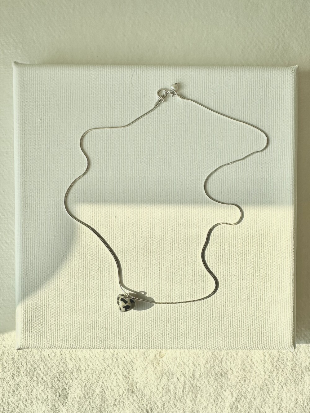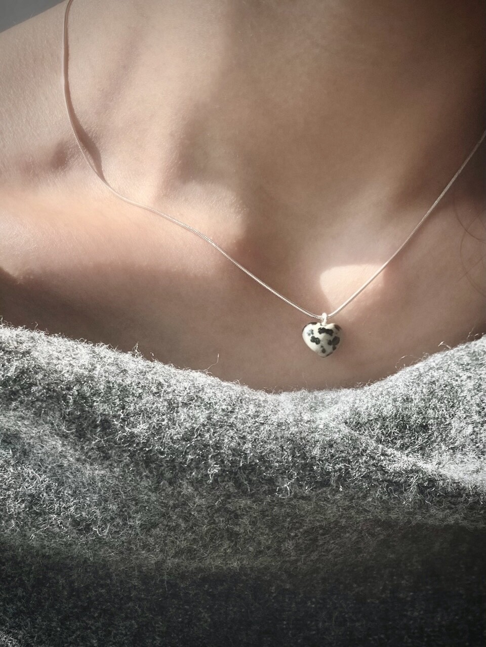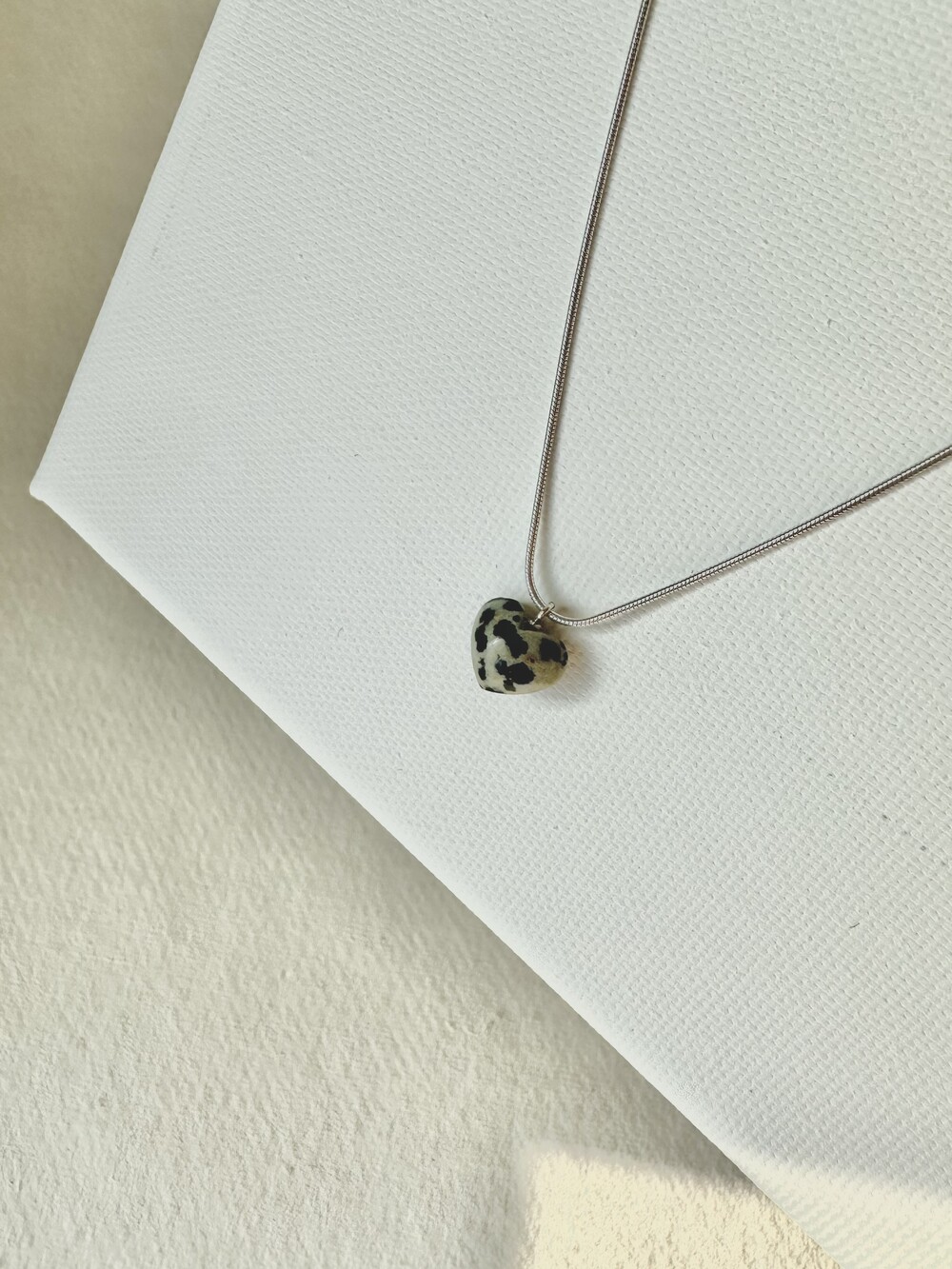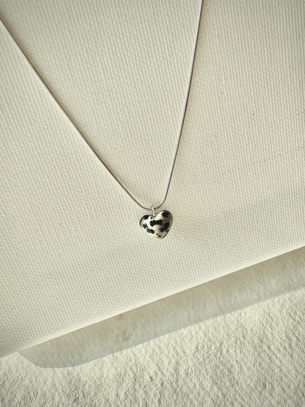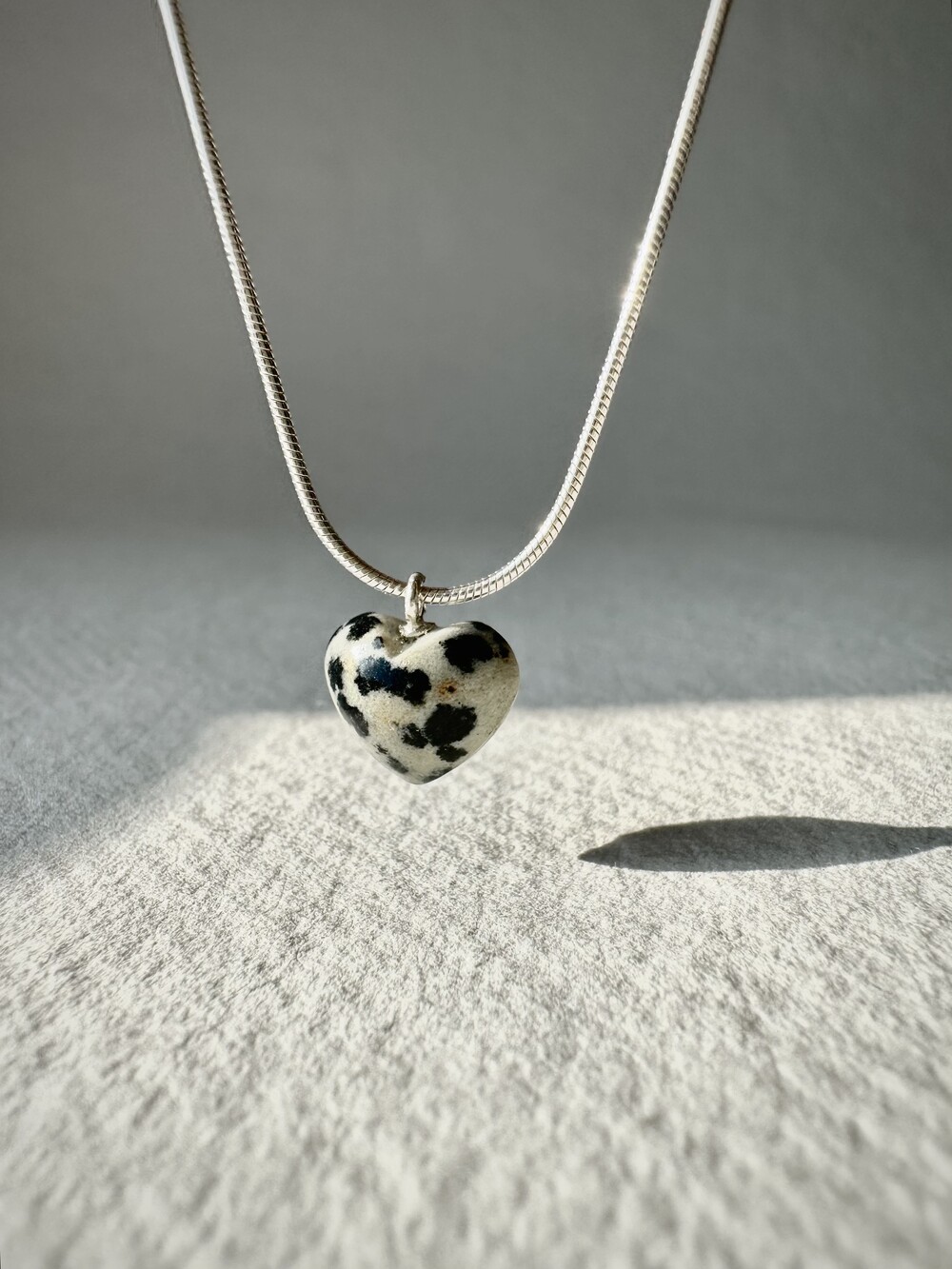 stoned heart necklace_dalmatian jasper