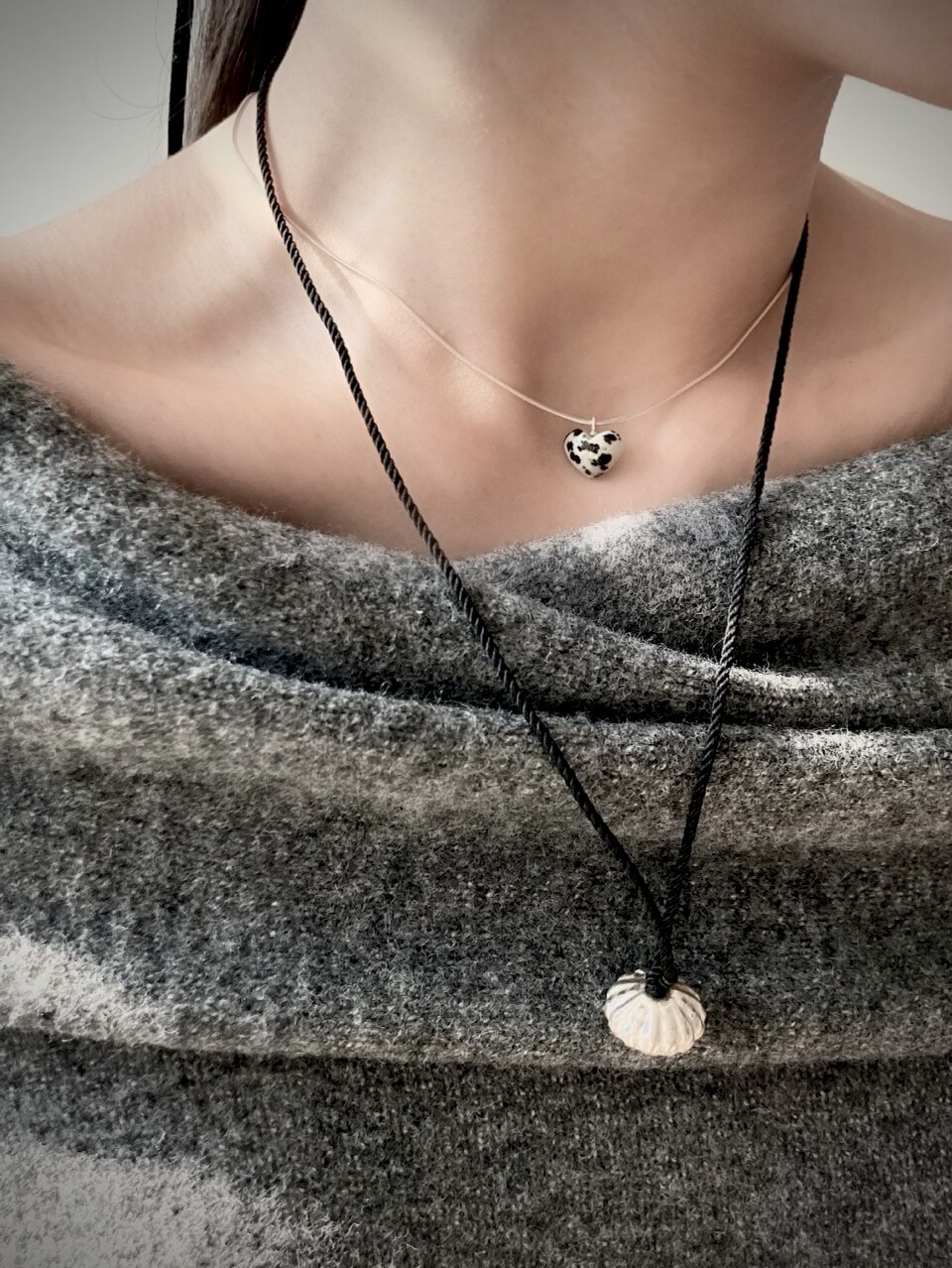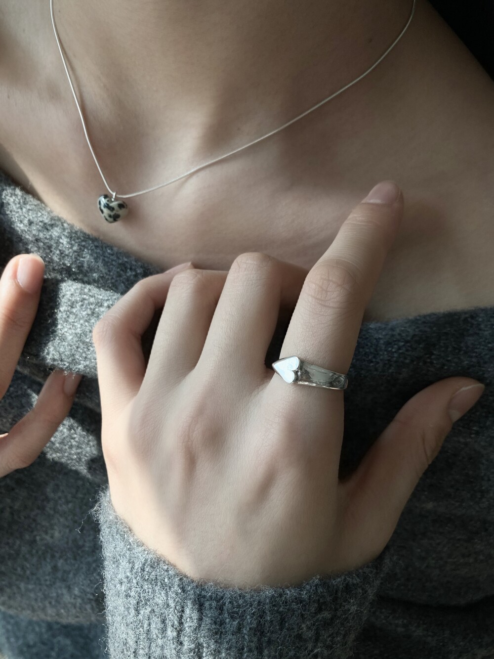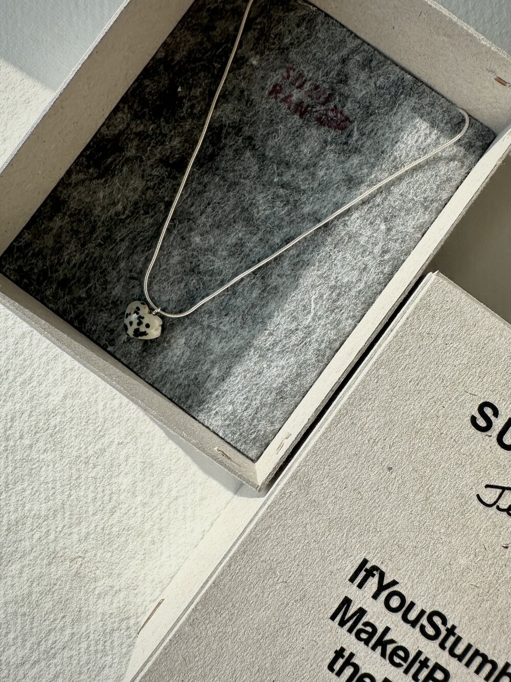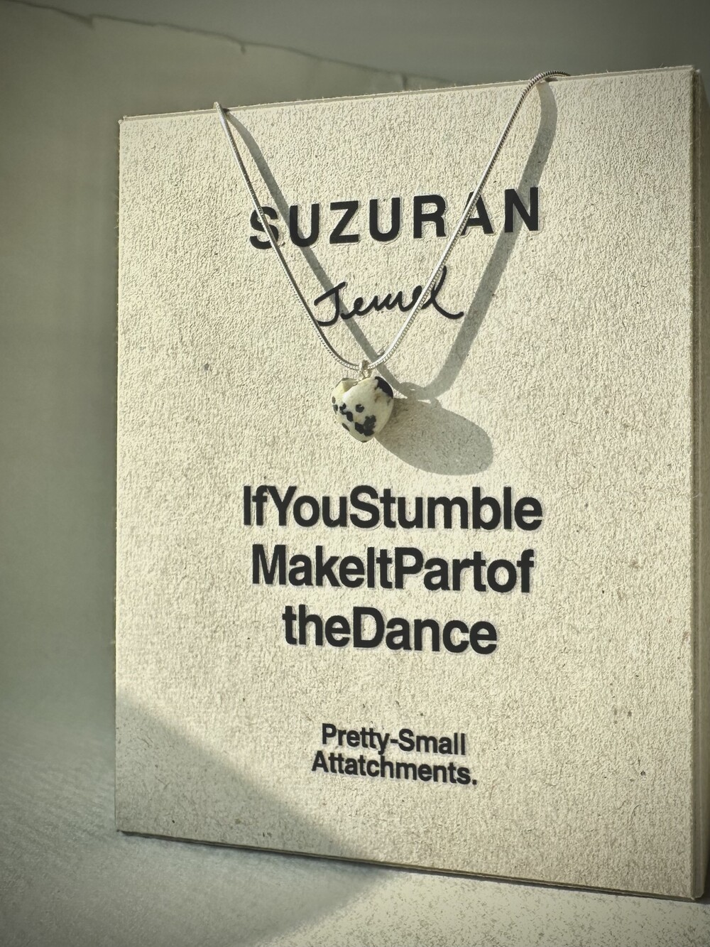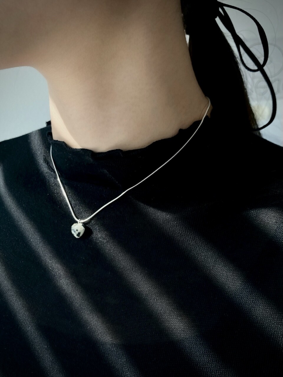 stoned heart necklace_dalmatian jasper
