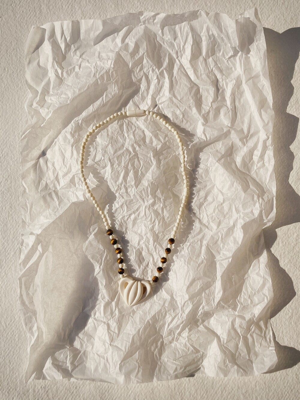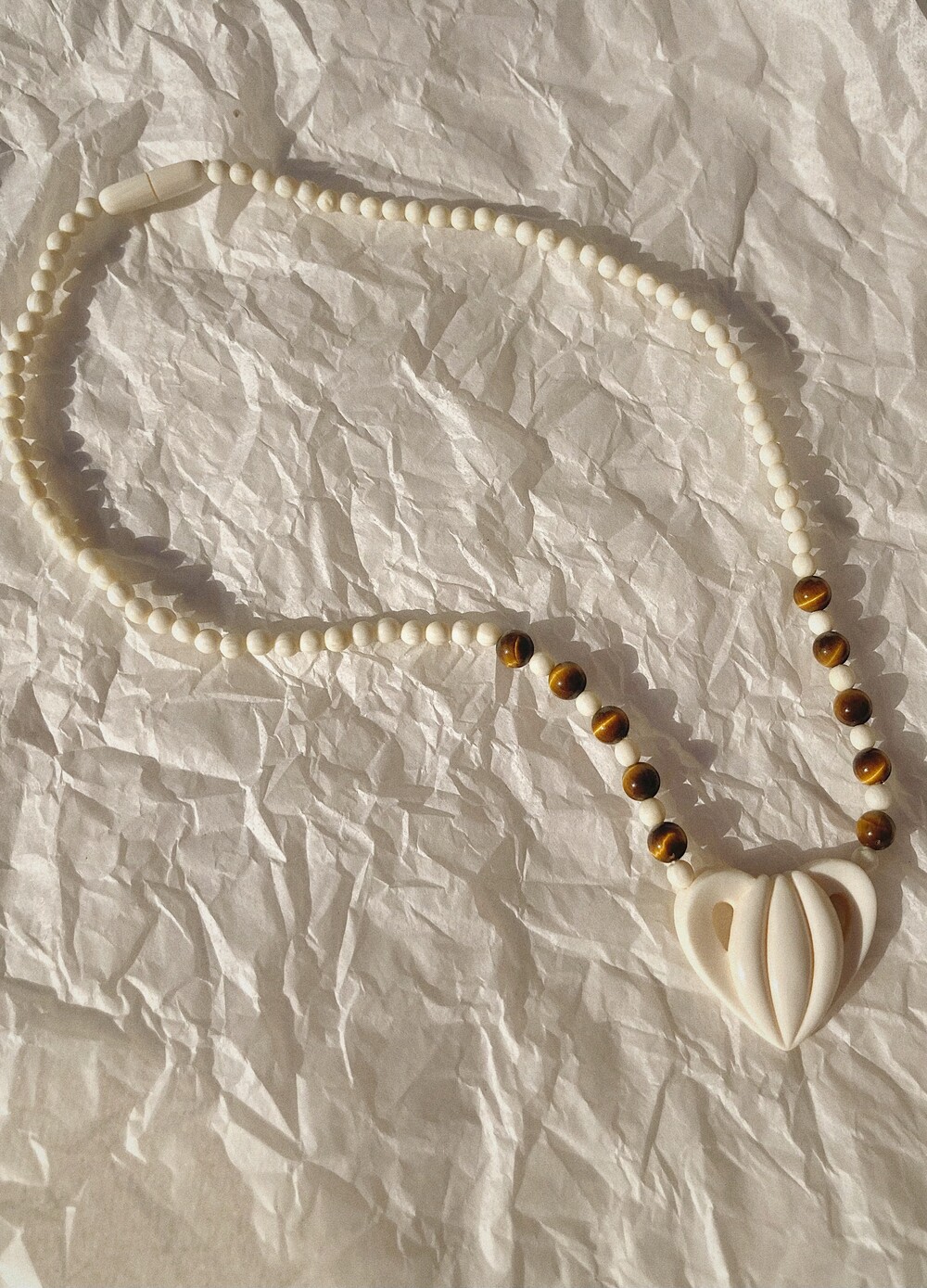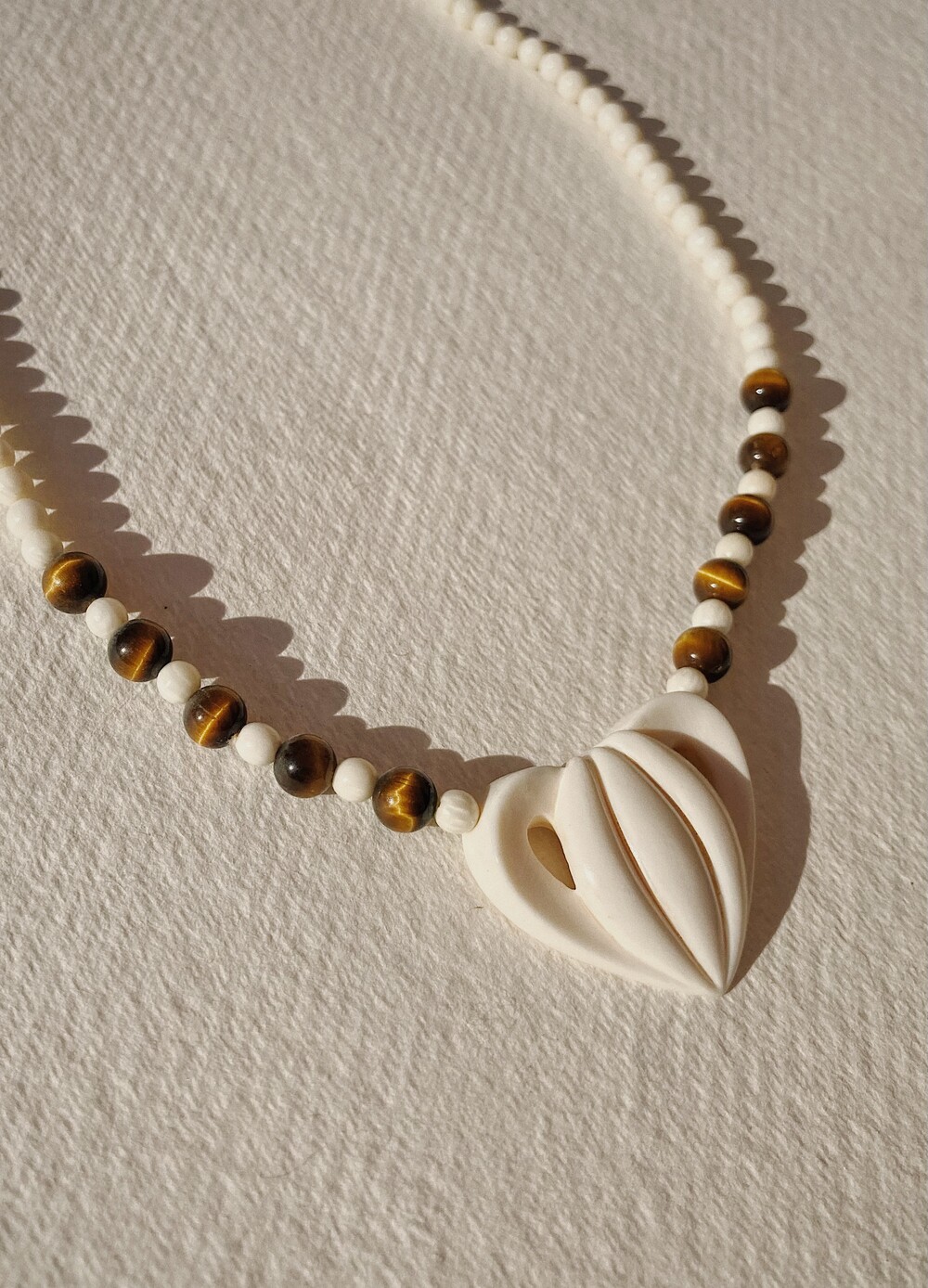 이미 지나간 시간은 바로 지금의 모습이기도 하고 언뜻 앞으로의 시간을 보여주기도 합니다. 지나간 시간 속의 사물들에게 지금의 손길을 더 해 새로운 얼굴을 만드는 작업을 하는 re_touches의 두번째 project [timeless ivory] 빙하기에 사라진 매머드들의 뿔을 섬세한 핸드메이드 가공으로 다듬은 빈티지 비즈들과 팬던트 ,그리고 그 보다 더 오래된 원석들은 짐작하기 어려운 아득한 시간이 담겨있습니다. 내가 살아온 시간 보다 오래 된 강함과 아름다움을 지닌 아이보리들은 시간이 지나도 변하지 않는 가치에 대해 생각하게 합니다. 80년대에 만들어진 빈티지 소재를 재 구성하여 제작한 네크리스들 입니다. One and only