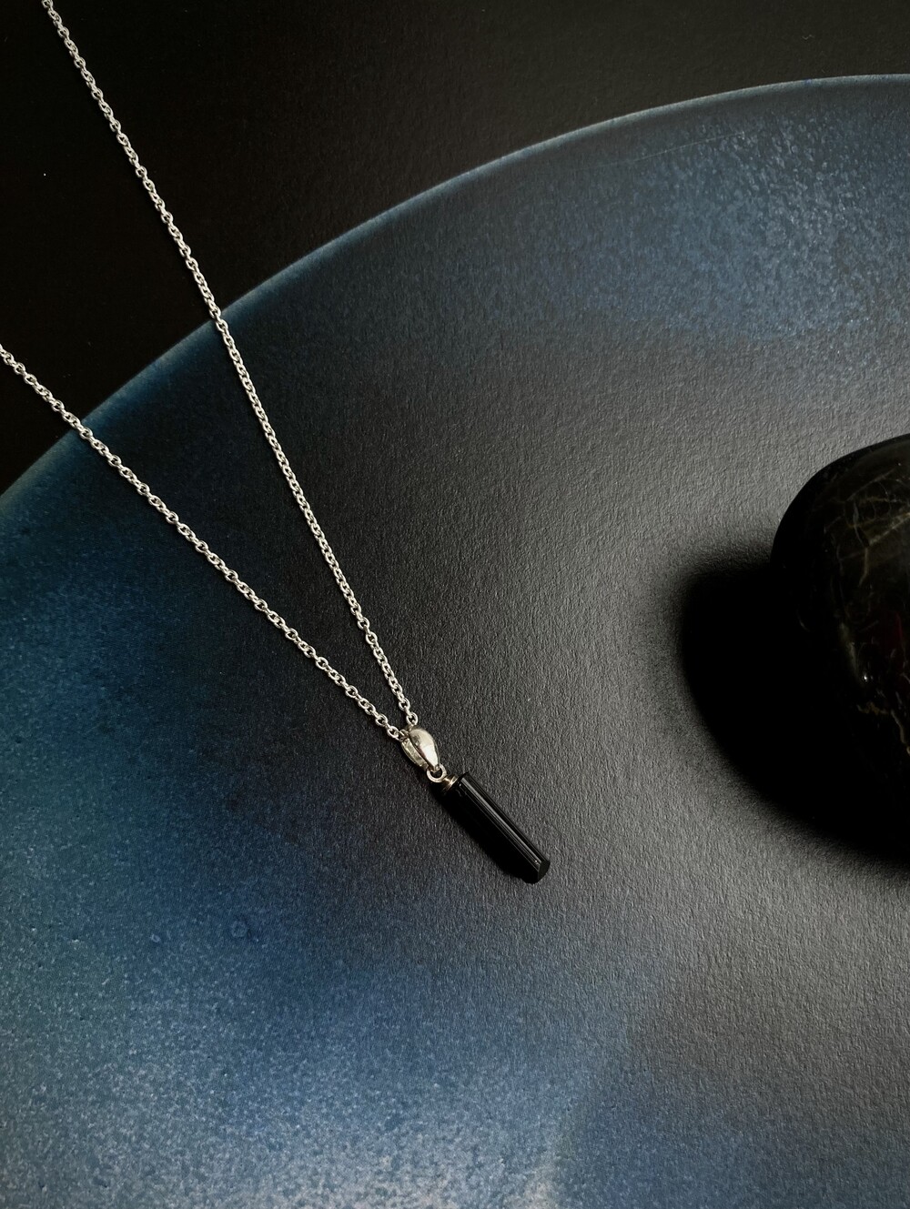 organic silver necklace_black tourmaline