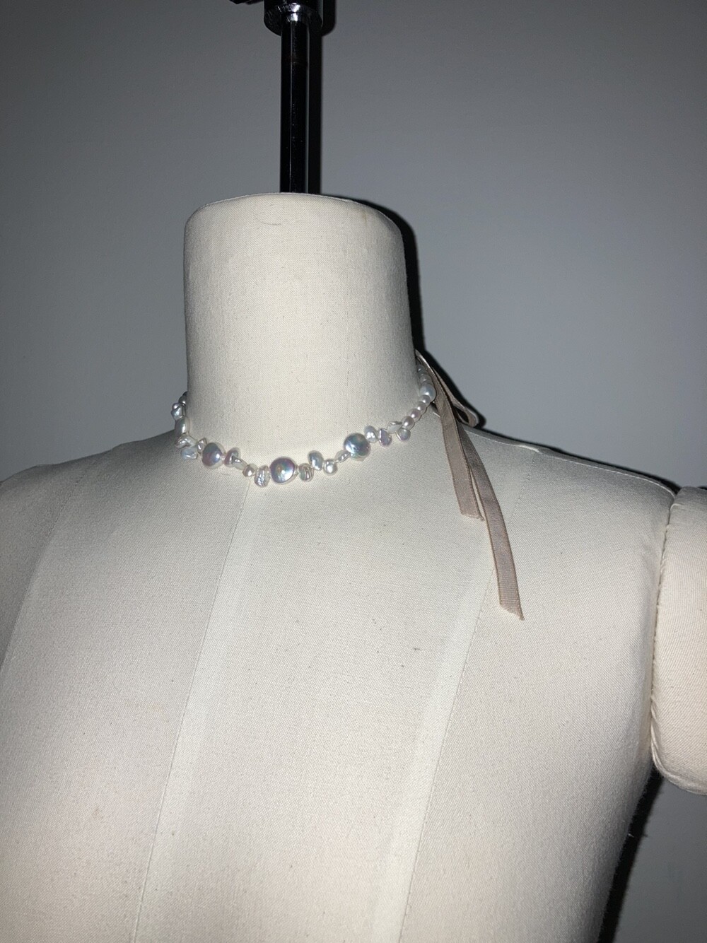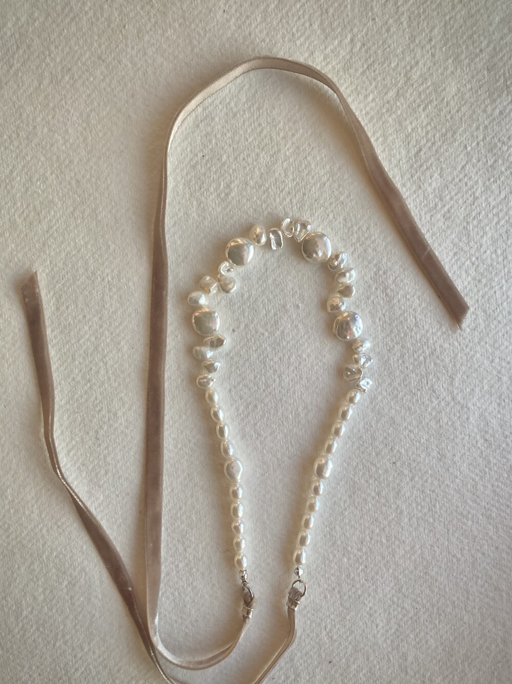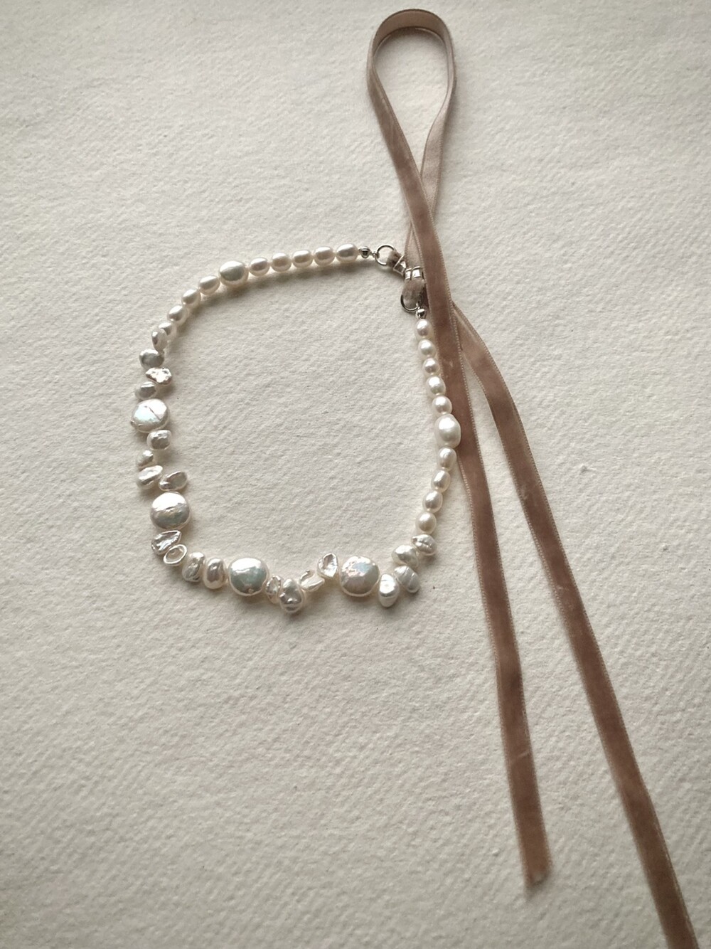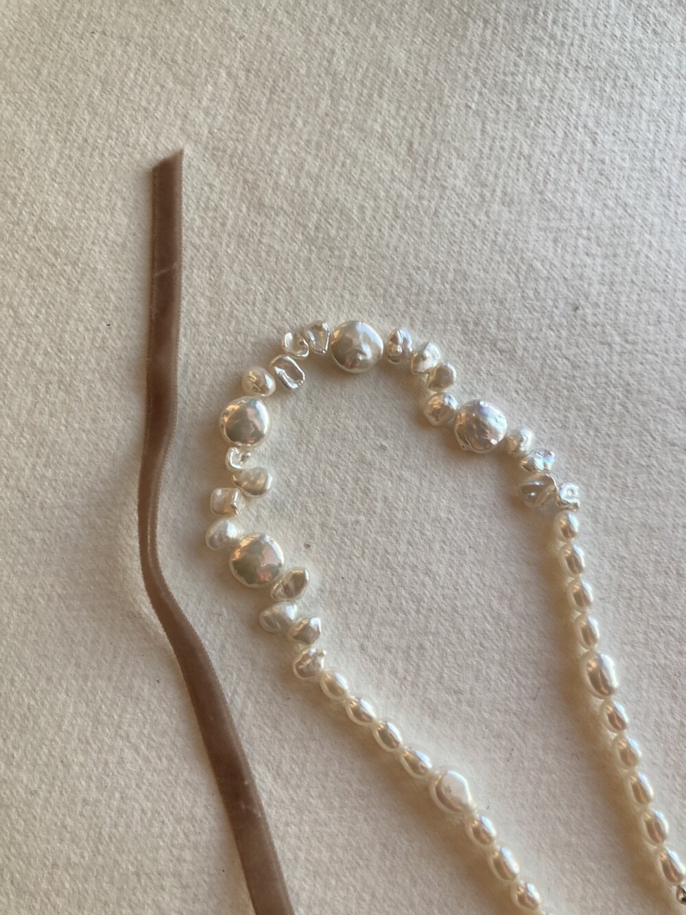 velvet ribbon pearl necklace_latte beige